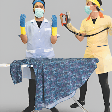Estos personajes únicos convierten cada tarea en una oportunidad para la diversión. ¿Te imaginas un planchado que se convierte en un operativo de alta tensión? ¿O unos plumeros y una fregona que los transportan al mágico mundo de Don Quijote de la Mancha? Cada objeto cobra vida en sus manos, llevando a los pequeños espectadores a un viaje lleno de sorpresas y risas.